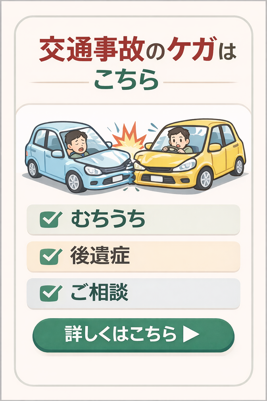 また、交通事故後のリハビリ・日常生活での怪我・スポーツ障害の早期回復も得意としています。
