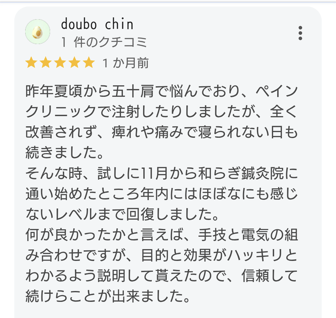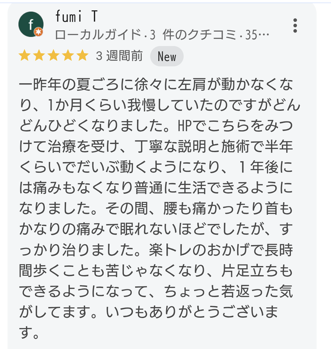 手技メインの施術で頑固な五十肩症状を改善していきます。